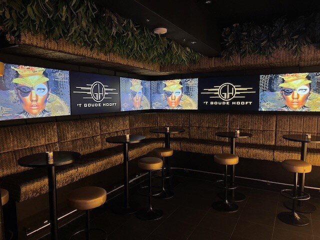 The amazing party venue, Club 1660, is located beneath ’t Goude Hooft. This club has everything needed to throw a fantastic party. From 12 large screens displaying your images to a permanent DJ booth, from party lighting to a fantastic sound system, from a spacious bar to a stage, from cozy seating areas to a large dance floor!