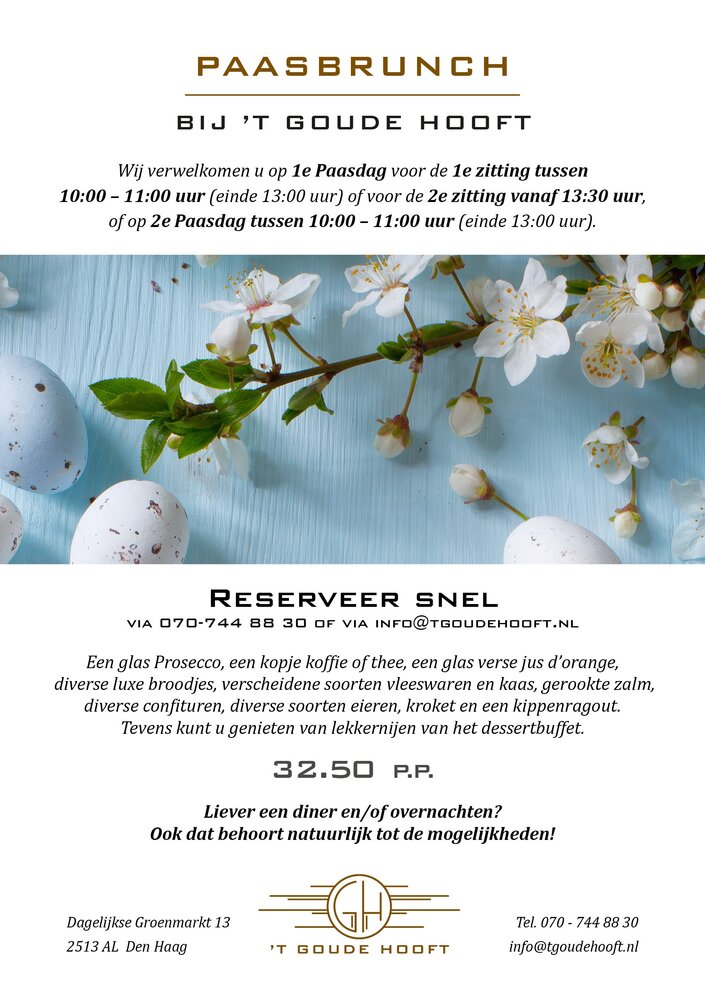 Enjoy pleasant days with family and friends at 't Goude Hooft during Easter brunch!